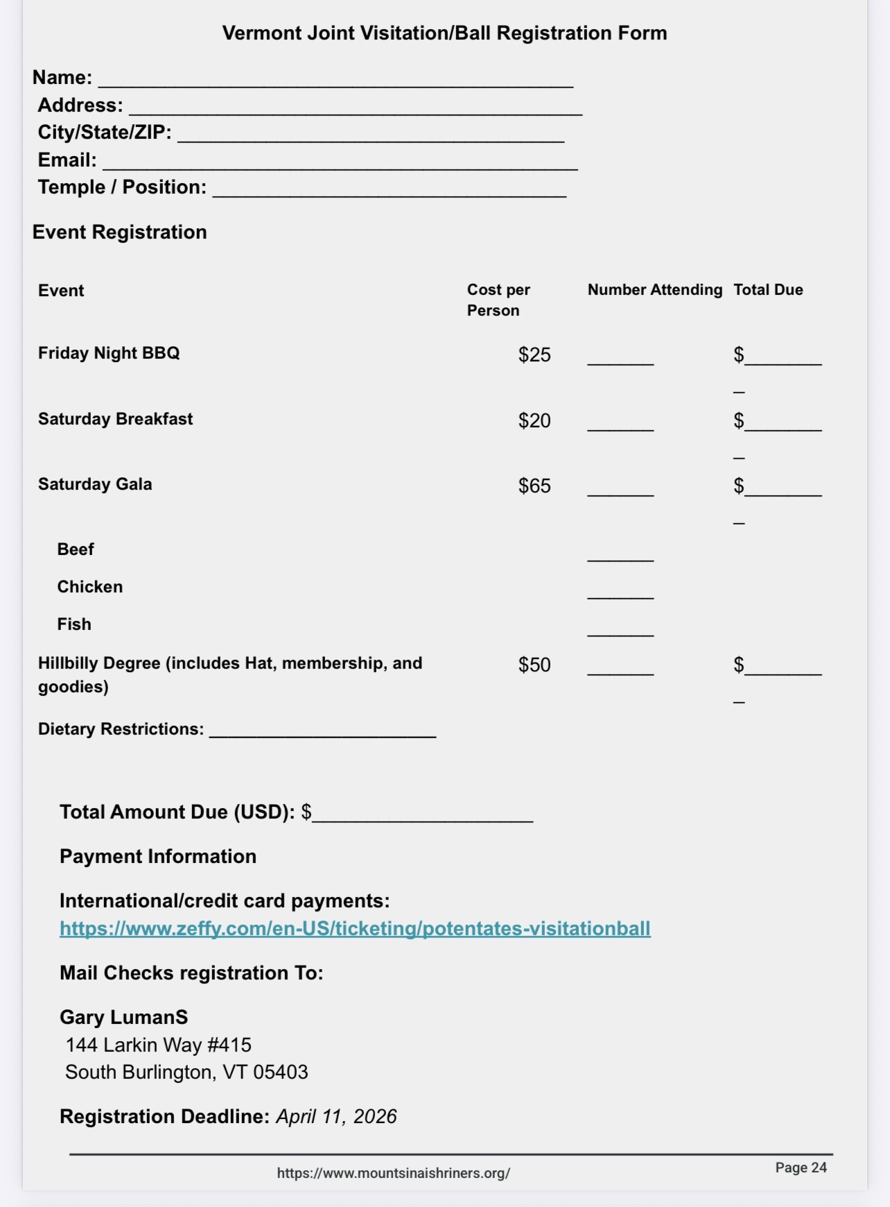 Registration form w/pricing(Deadline for sign-ups is April 11th)